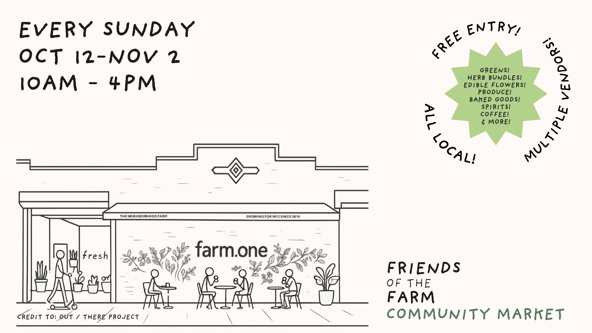 Farm.One 625 Bergen Street, Brooklyn, NYWe’re bringing our favorite local growers and makers together every Sunday inside our hydroponic farm! Join us for freshly harvested greens, botanical spirits, mushrooms, coffee, tea, pastries, plants & more from some of our favorite local sustainability-focused businesses.WHEN: Sundays Oct 12, 19, 26 & Nov 2WHERE: 12pm-4pm at Farm.OneCome taste a funky herb you’ve never […]